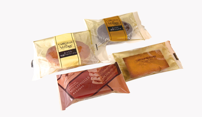 焦がしバターのフィナンシェ1個、横浜馬車道ミルフイユ(キャラメルラテ)1個、ガトー・スフレ(ふっくら芳醇フロマージュ)1個、ガトー・スフレ(ふっくら濃厚ショコラ)1個